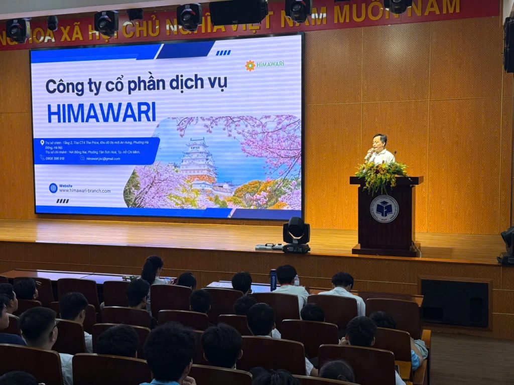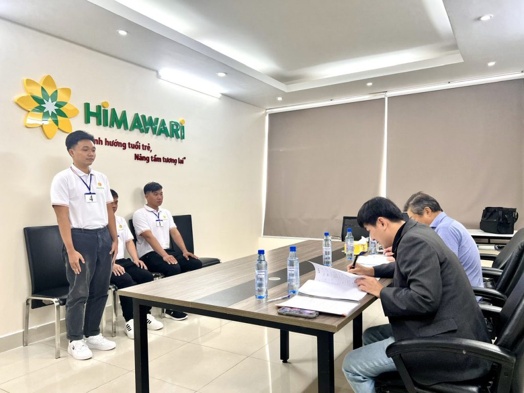CÁC HOẠT ĐỘNG CỦA CÔNG TY TRONG THÁNG 1/2026 Tiễn 2 bạn nam đơn Dán gạch xuất cảnh ngày 05/01/2026 và 2 bạn nữ đơn in ấn công ty Sogo nhập cảnh ngày 14/01/2026 CÁC HOẠT ĐỘNG CỦA CÔNG TY TRONG THÁNG 12/2025 Các bạn Thực tập sinh xuất cảnh qua Nhật trong tháng CÁC HOẠT ĐỘNG CỦA CÔNG TY TRONG THÁNG 11/2025 1. Gặp mặt người nhà, đưa tiễn lao động xuất cảnh và phỏng vấn thực tập sinh- kỹ sư trong tháng 2. Chủ tịch HĐQT Công ty HIMAWARI tiếp và làm việc với các Nghiệp đoàn đến làm việc 3. Hoạt động tư vấn nguồn tại tỉnh Đắk Lắk và Trường ĐH Công Thương của Công ty CÁC HÌNH ẢNH HOẠT ĐỘNG CÔNG TY TRONG THÁNG 10/2025 1. Hình ảnh phỏng vấn ngành may mặc và tiễn 6 bạn thực tập sinh nam xuất cảnh 2. Chúc mừng 19 bạn đã có giấy tư cách lưu trú trong tháng 10/2025 3. Hình ảnh ngày 10/10/2025 Công ty Himawari tổ chức 2 cuộc phỏng vấn với 2 nghiệp đoàn Nhật Bản ngành nghề Cơ khí và Ngành nghề Chế biến thực phẩm . Hình Ảnh Công ty đi tư vấn Ngày hội việc làm tại tỉnh Đắk Lắk và Phỏng vấn đơn hàng cơ khí trong tháng 9/2025 Các hình ảnh hoạt động của Công ty tháng 08/2025 CÁC HOẠT ĐỘNG CỦA CÔNG TY TRONG THÁNG 07/2025 Hình ảnh phỏng vấn và xuất cảnh trong tháng 07/2025 CÁC HOẠT ĐỘNG CỦA CÔNG TY TRONG THÁNG 06/2025 Hình ảnh tiễn các bạn xuất cảnh trong tháng CÁC HOẠT ĐỘNG CỦA CÔNG TY TRONG THÁNG 05/2025 CÁC HOẠT ĐỘNG CỦA CÔNG TY TRONG THÁNG 04/2025 Các hoạt động của Công ty tháng 11/2024 Các hoạt động của Công ty tháng 10/2024 Các hoạt động của Công ty tháng 9/2024 Các hoạt động của Công ty tháng 8/2024 Các hoạt động của Công ty tháng 7/2024 Các hoạt động của Công ty tháng 6/2024 Các hoạt động của Công ty tháng 5/2024 Các hoạt động của Công ty tháng 4/2024 Các hoạt động của Công ty tháng 3/2024 Các hoạt động của Công ty tháng 2/2024 Các hoạt động của Công ty tháng 1/2024 Hoạt động các chuyến công tác thăm Thực tập sinh tại Nhật Bản 2023 Các hoạt động của Công ty trong tháng 12/2023 Các hoạt động của Công ty trong tháng 11/2023 Các hoạt động của Công ty trong tháng 10/2023 Các hoạt động của Công ty trong tháng 9/2023 Các hoạt động của Công ty trong tháng 8/2023 Các hoạt động của Công ty trong tháng 7/2023 Các hoạt động của Công ty trong tháng 6/2023 Các hoạt động của Công ty trong tháng 5/2023 Chúc các bạn thành công chuyến bay 11/04/2023 Các bạn đã làm xong thủ tục chuẩn bị bay sang Nhật Bản 09/04/2023 Chúc mừng các bạn đến Nhật Bản an toàn ngày 09/04/2023 Buổi phỏng vấn các bạn thực tập sinh ngày 04/04/2023 Chúc mừng các bạn lên máy bay sang Nhật Bản ngày 03/04/2023 Chúc mừng các bạn ngành may, cơ khí đã có Visa nhập cảnh tháng 4/2023 Công tác hội nghị tư vấn lao động tại Tỉnh Phú Yên Đội ngũ nhân viên Chi nhánh Công ty Cổ phần Dịch vụ Himawari Lớp đào tạo tiếng Nhật và ngành nghề cho các thực tập sinh.